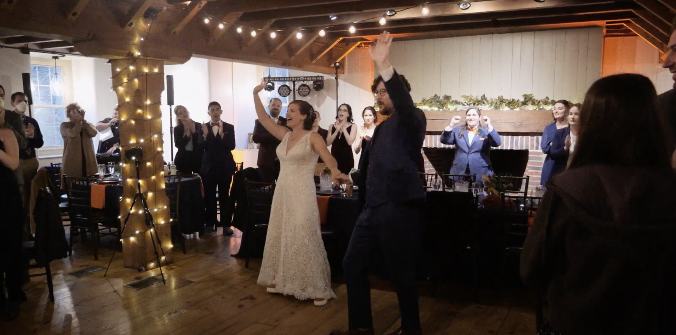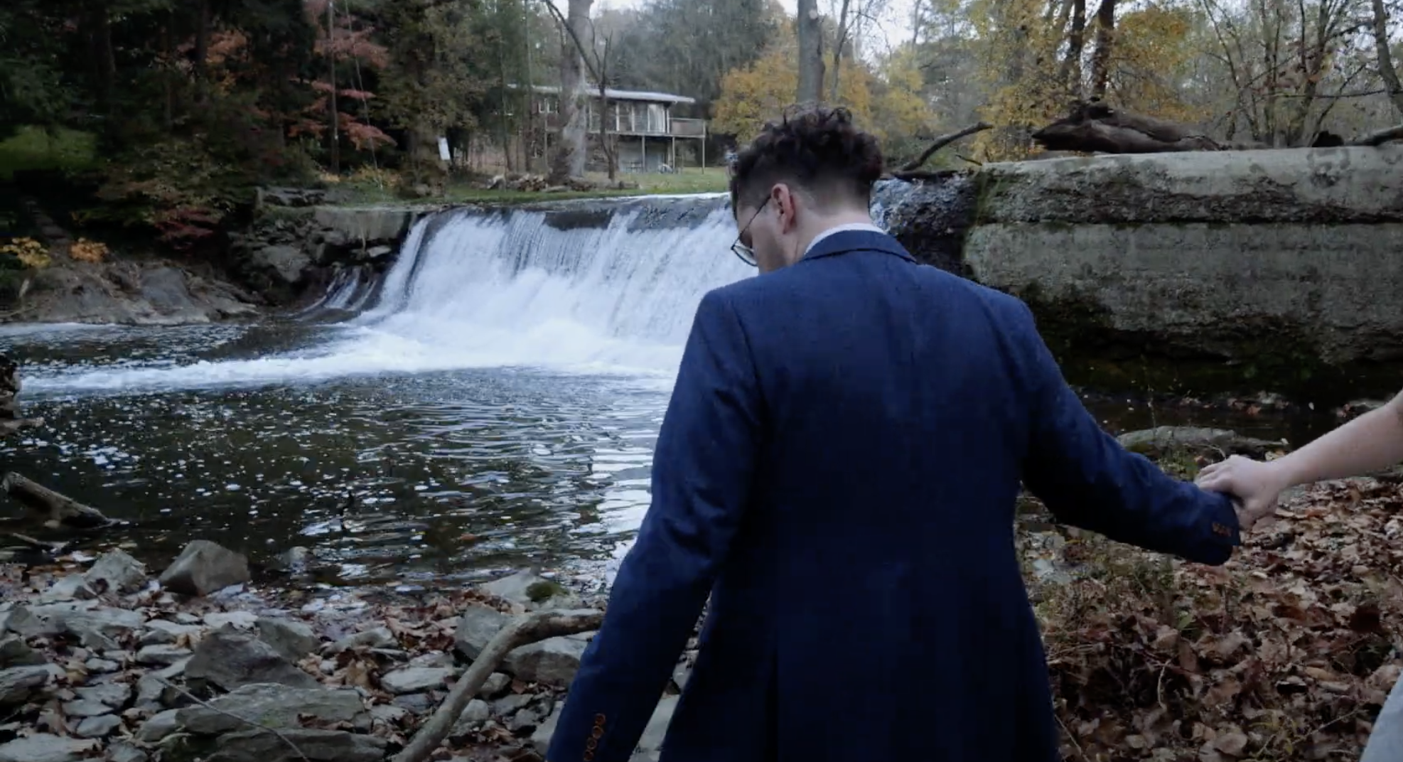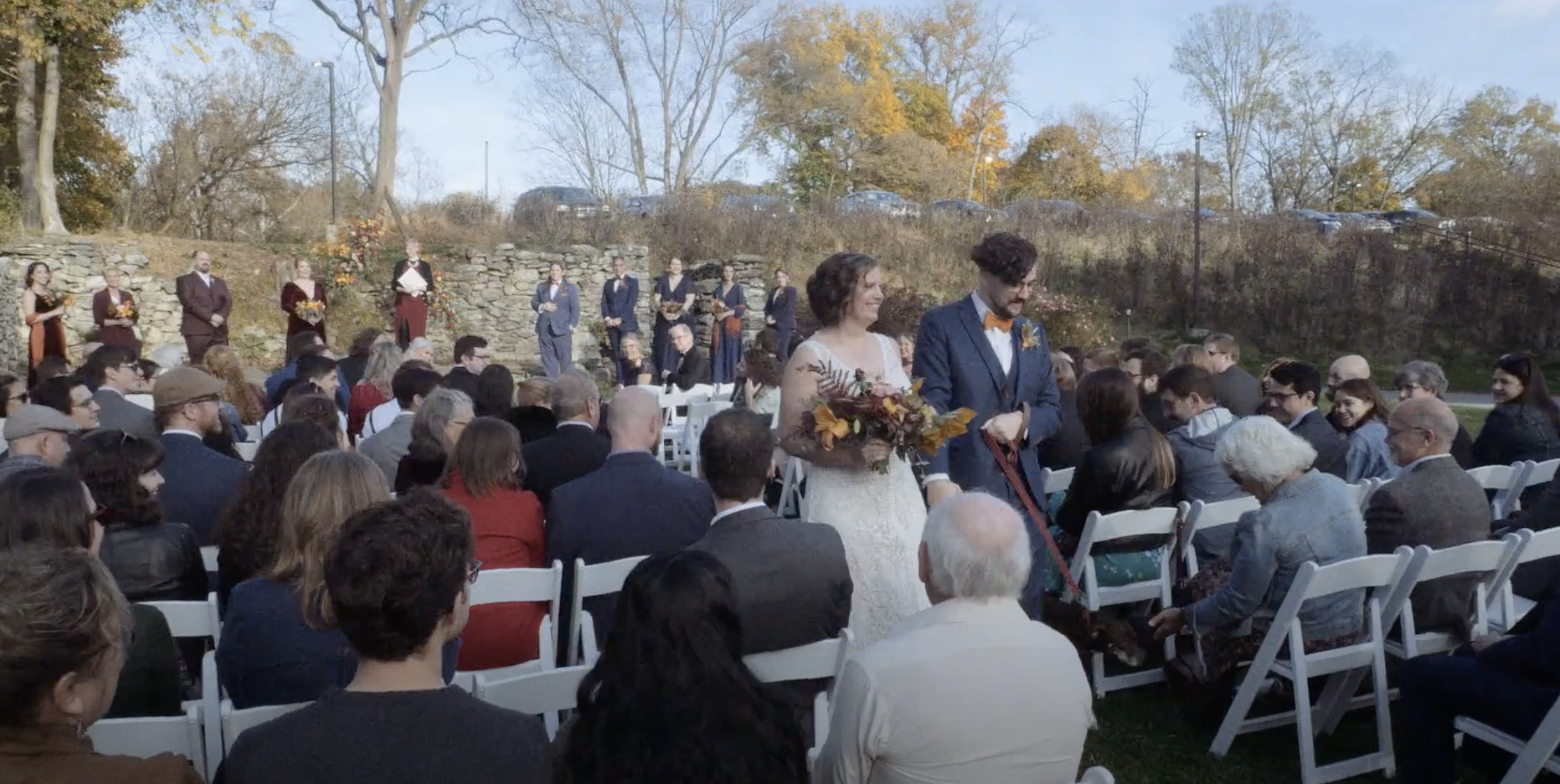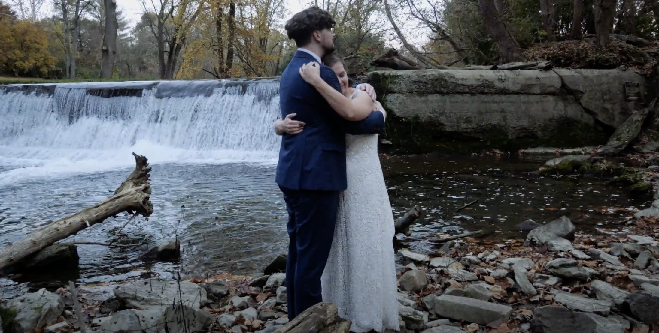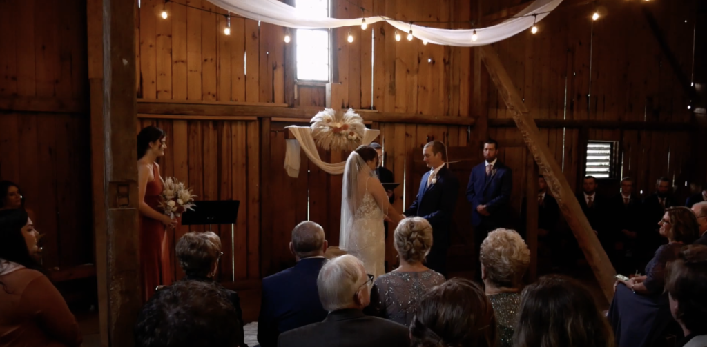 Jesse and Heidi had an incredibly unique wedding held on the banks of the Little Conestoga Creek at The Mill at Manor Falls. The main building is massive old mill that has been completely renovated, with large rooms upstairs for the groomsmen and bridal party to get ready in and relax, and a dining and dancing space on the lower level. It is a unique location with an old stone bridge and a large water fall that rushes over a dam. The ceremony was held on the ruins of a barn on a grass field. The whole property has a very old world feel, almost a fantasy setting. The weather was spectacular, especially for South East Pennsylvania at the end of October. It was a perfect fall day. Jesse and Heidi had a beautiful first look down by the creek, then took pictures with the bridal party. The ceremony included their dog Charlie, and the tradition of hand fasting, literally tying the knot. It was a unique ceremony featuring poetry and readings by a friend. The couple wrote their own vows. A cocktail hour was held on the patio of the mill building, and the reception started soon after inside. They had food served by Himalayan Curry and Grill and Callaloo Trinidadian Kitchen, two of the best restaurants in Lancaster. The couple had one of the best first dances I’ve seen, and their friends were a good match because they were able to do a very fun steal dance. In a fun twist, the couple each had paintings commissioned for each other as a gift and the surprise presentation was a lot of fun. The couple took some incredible romantic pictures by the waterfall at dusk. I was able to make good use of the drone to get a good look of the property. The gimbal was very useful for this wedding to follow the dancing, walking, and interesting photoshoots.