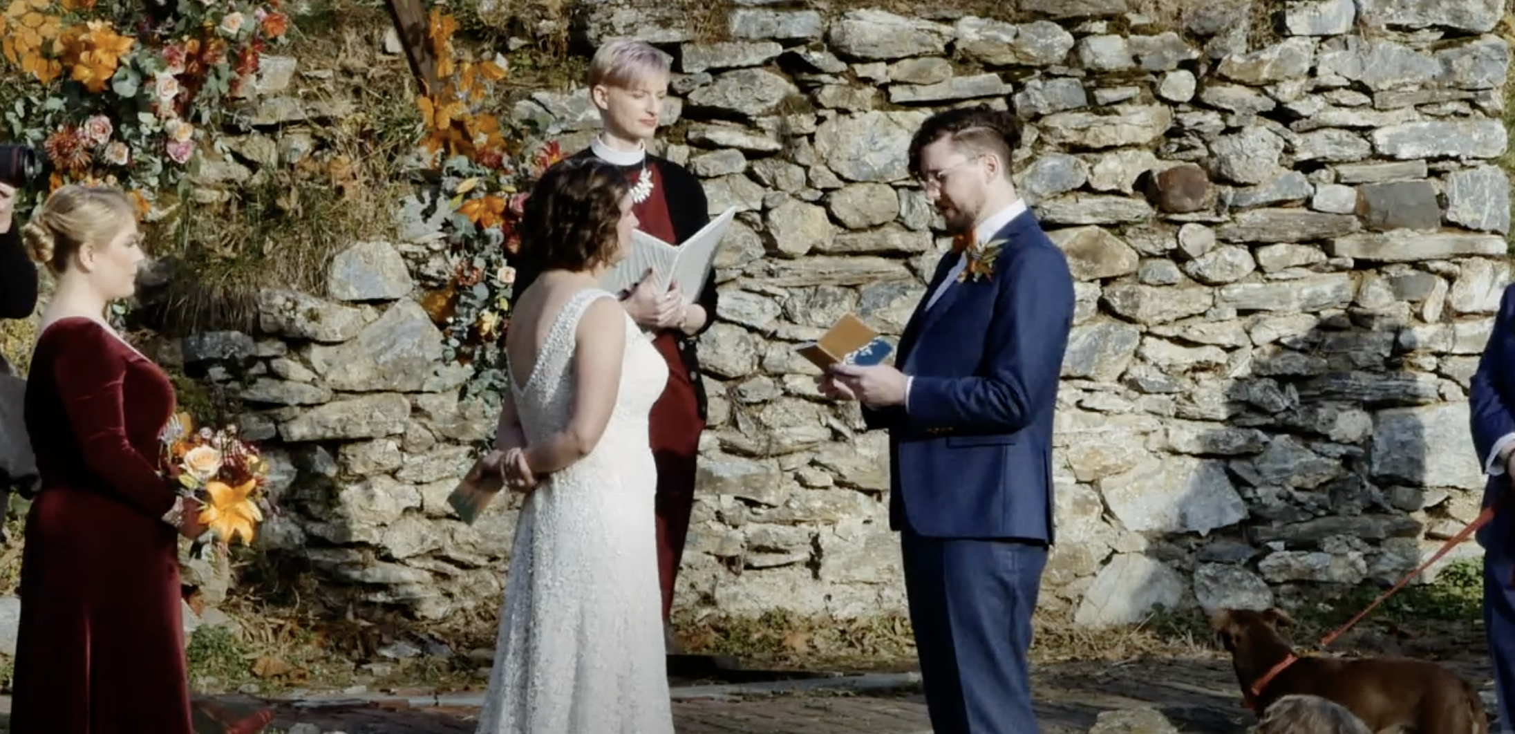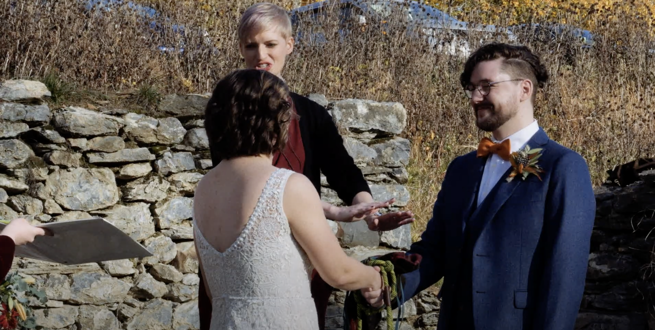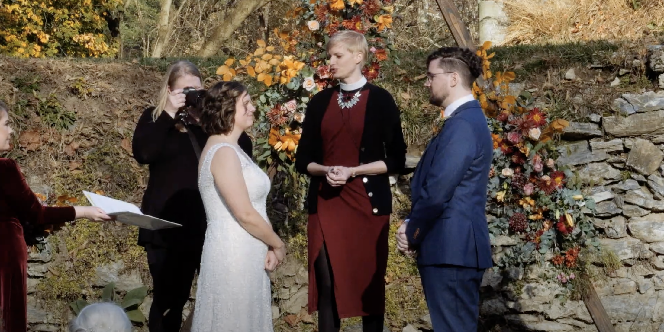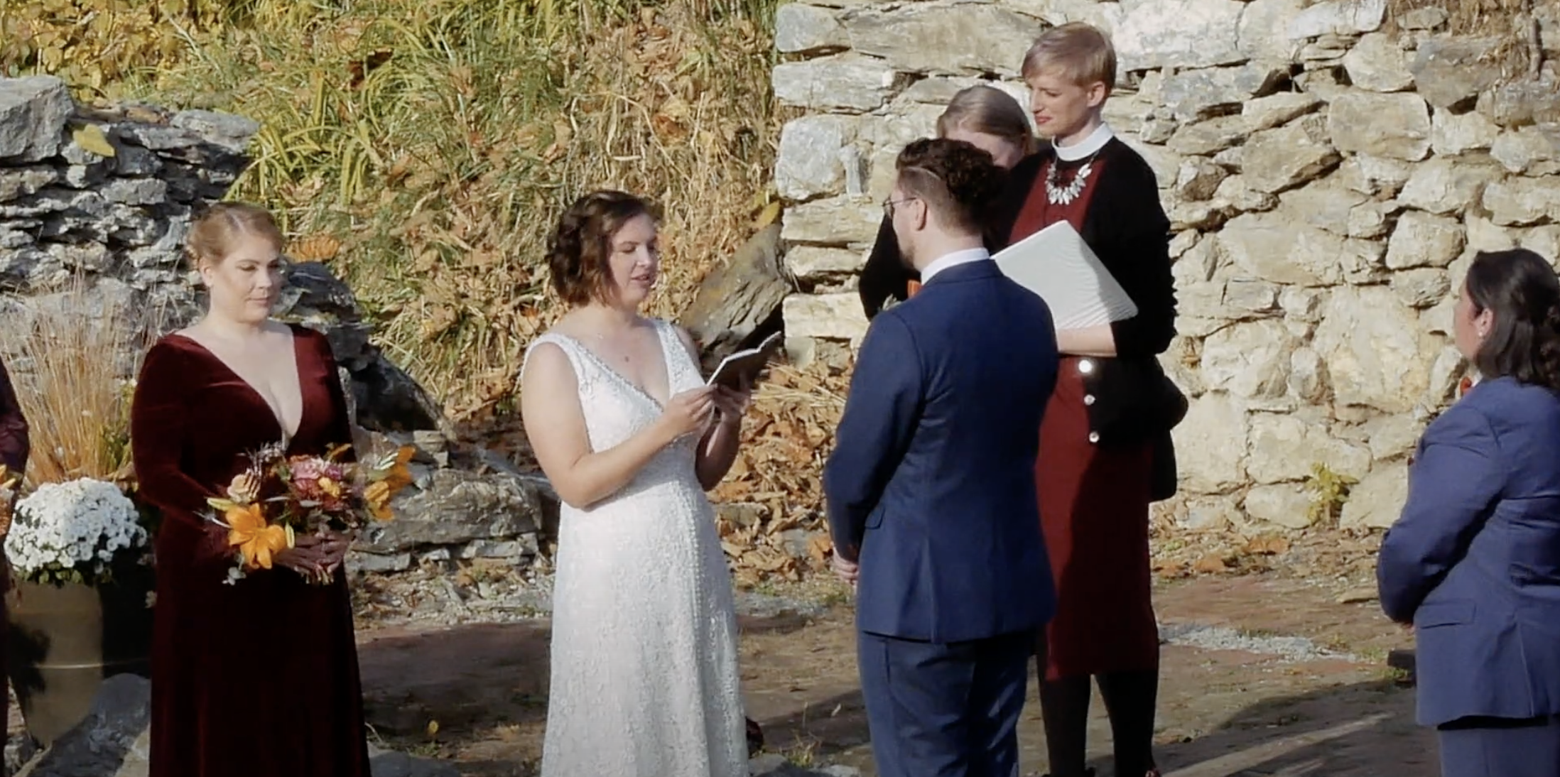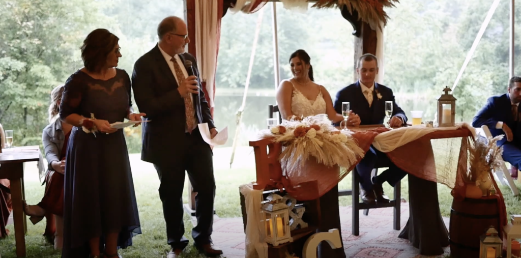 Jesse and Heidi had an incredibly unique wedding held on the banks of the Little Conestoga Creek at The Mill at Manor Falls. The main building is massive old mill that has been completely renovated, with large rooms upstairs for the groomsmen and bridal party to get ready in and relax, and a dining and dancing space on the lower level. It is a unique location with an old stone bridge and a large water fall that rushes over a dam. The ceremony was held on the ruins of a barn on a grass field. The whole property has a very old world feel, almost a fantasy setting. The weather was spectacular, especially for South East Pennsylvania at the end of October. It was a perfect fall day. Jesse and Heidi had a beautiful first look down by the creek, then took pictures with the bridal party. The ceremony included their dog Charlie, and the tradition of hand fasting, literally tying the knot. It was a unique ceremony featuring poetry and readings by a friend. The couple wrote their own vows. A cocktail hour was held on the patio of the mill building, and the reception started soon after inside. They had food served by Himalayan Curry and Grill and Callaloo Trinidadian Kitchen, two of the best restaurants in Lancaster. The couple had one of the best first dances I’ve seen, and their friends were a good match because they were able to do a very fun steal dance. In a fun twist, the couple each had paintings commissioned for each other as a gift and the surprise presentation was a lot of fun. The couple took some incredible romantic pictures by the waterfall at dusk. I was able to make good use of the drone to get a good look of the property. The gimbal was very useful for this wedding to follow the dancing, walking, and interesting photoshoots.